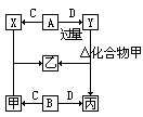 例2.由短周期元素形成的四种常见的非金属单质A、B、C、D。在室温下,它们之中有三种气体,一种固体。在这些单质中,B的式量最小,C次之。这些单质和甲、乙、丙、X、Y五种化合物之间存在如下关系: