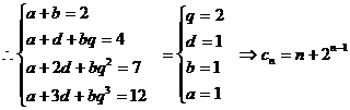的各项是一个等差数列与一个等比数列对应项的和,若c1=2,c2=4,c3=7,c4=12,求通项公式cn