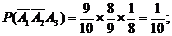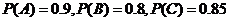 解:分别记该生语、数、英考试成绩排名全班第一的事件为