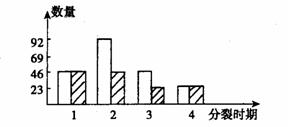 11.下图是人体一个细胞的一次分裂过程中,细胞核内 DNA 分子数(无阴影)和染色体数(阴影)在 1 、 2 、 3 、 4 四个时期的统计数据,其中可以表示着丝点分开、同源染色体分离的时期是:( )