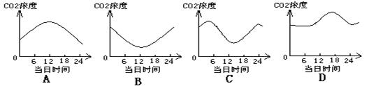14. 在淡水池中,若只有金鱼藻生存,则下图曲线中最能代表池水中CO2浓度变化的是( )