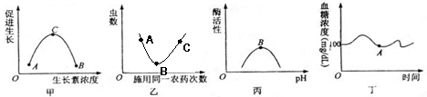 D.丁图曲线A点时,人的胰岛A细胞兴奋性增强,胰岛B细胞的兴奋性随后增强