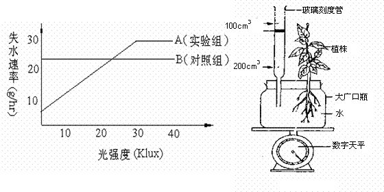 (2)若在此装置的基础上进一步研究光照强度与植物蒸腾失水速率的关系,实验结果如图所示: