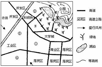 练习题12:读某城市规划略图,回答(1)-(2)题。