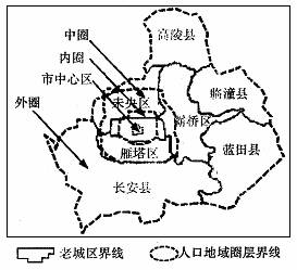 答案:D点拨:内圈和中圈人口快速增长,所以目前形成西安市主要住宅区的是内圈和中圈。