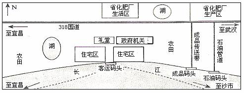(3)房地产业 钢铁工业 甲城镇位于西南风(西风带)的上风方向,适宜布局住宅区;乙城镇布局钢铁工业,对城区大气污染小。