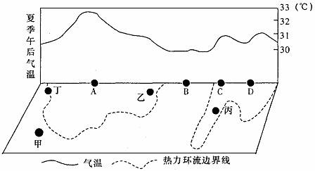 答案:B点拨:郊区比城市气温低,A、B、C、D中夏季午后气温最低的是B。