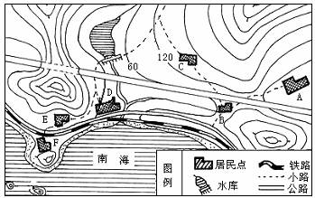 答案:(1)D村 地形相对开阔和平坦;位于河流交汇处;临河临海,有铁路通过,水陆交通便利;处多个居民点中间位置,方便与其他居民点联系。