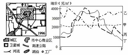 (3)若该市规划在甲、乙两个卫星城镇中,一个发展房地产业,一个发展钢铁工业,你认为甲城镇应发展 ,乙城镇应发展 。这样决策的理由是什么?