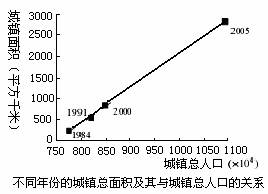 练习题25:下图反映了某地区不同年份的城镇总面积及其与城镇总人口的关系。从图中可知