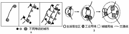 答案: (1)A 从点状分布逐渐发展为网格状(2)B(3)城市化 城市数量不断增加 城市规模不断扩大(4)接近主要交通干线,保护环境