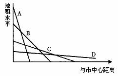 答案:B 点拨:在市中心地租从高到低顺序排列的分别是:商业、住宅、工业和农业用地。工业区C的区位有不断向城市外缘移动的趋势;住宅区B是城市中最广泛的土地利用方式;农业活动D受自然条件影响较大;商业活动A对交通的依赖性较大,往往安排在市中心。