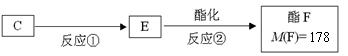 C经一步反应可生成E,E是B的同分异构体,则反应①属于 反应(填反应类型名称),写出酯F的结构简式: 。