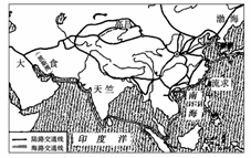 (08北京13)下图是一张未完成的中国古代对外交通路线示意图。根据所学知识,可以判断与该图对应的朝代是