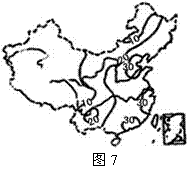 图7为某类影响我国农业的自然灾害等值线分布图,据图完成16-17题。