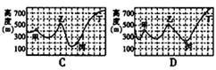 经过甲、乙、丙、丁四地所绘制成的剖面图,最可能的是 ( )