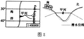 图9为某地降水量与河流径流量日变化示意图,其中最能反映集水区域内植被覆盖良好的流量曲线是 ( )