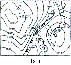 读亚洲某区域某时刻海平面等压线分布图(单位:hPa),回答20-22题。