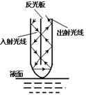 1.光液面传感器有一个像试管模样的玻璃管,中央插一块两面反光的玻璃板。入射光线在玻璃管内壁与反光板之间来回发生全反射,进入到玻璃管底部,然后在另一侧反射而出(与光纤原理相同)。当透明液体的折射率大于管壁玻璃的折射率时,就可以通过监测出射光的强弱来判定玻璃管是否被液体包住了,从而了解液面的高度,以下说法正确的是:
