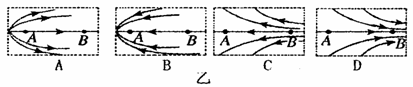 5.负电荷从电场中 A 点由静止释放,只受电场力作用,沿电场线运动到 B 点,它运动的v-t图像如图甲所示,则两点A、B所在区域的电场线分布情况可能是图乙中的: