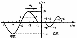 8.如图所示,为在同一绳上相向传波的甲乙两列简谐横波某时刻的波形图,其中a、b、c是甲波上的三个点。下列说法正确的是: