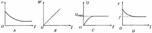 4.一列火车由机车牵引沿水平轨道行驶,经过时间t,其速度由0增大到v,已知机车功率P保持不变,列车所受阻力f为恒力,用F表示机车的牵引力,用W表示牵引力做的功,用 a 表示加速度,则下列图象正确的是: