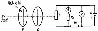 如图所示,s为一点光源,P、Q 是偏振片,R 是一光敏电阻,R1、R2是定值电阻,电流表和电压表均为理想电表,电源电动势为E,内阻为r。则当偏振片Q由图示位置转动90°的过程中,电流表和电压表的示数变化情况为: