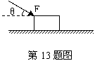 13.如图所示,某物体受到与水平方向成θ角(θ<90°)推力F的作用,沿粗糙的水平面作加速度为a的匀加速直线运动,现在保持F的方向不变,而使变为原来的2倍,此后: