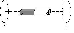 如图1所示,一环形线圈沿条形磁铁的轴线,从磁铁N极的左侧A点运动到磁铁S极的右侧B点,A、B两点关于磁铁的中心对称,则在此过程中,穿过环形线圈的磁通量将: