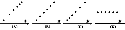 一架飞机在高空中由西向东沿水平方向做匀加速飞行,飞机每隔相同时间空投一个物体,共连续空投了6个物体(不计空气阻力)。下图是从地面某时刻观察到的6个空投物体的位置,其中正确的是