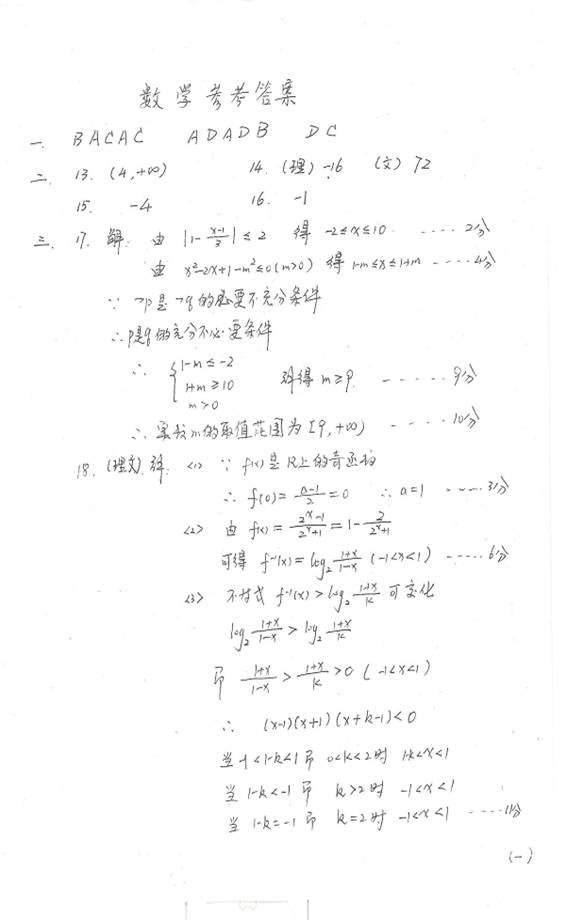 17.(10分)已知命题