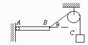 m的重物C相连,若杆AB呈水平,细线与水平方向夹角为q 时恰能保持平衡,则