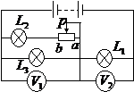 20.用图所示电路观察3个小灯泡的亮度变化和两个电压表的示数变化情况,如果滑动变阻器的滑片P由