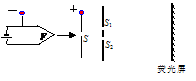 如图所示,灯丝F发射的电子束经过电场加速后从阳极上的狭缝S穿出,通过两条平行狭缝S1、S2后,在荧光屏上形成明显的双缝干涉图样。已知一个电子从狭缝S穿出时动量为P,普朗克常量为h,则( )