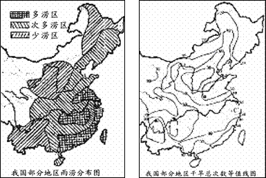 26.读图8,《我国部分地区雨涝分布图》和《我国部分地区干旱总次数等值线图》,结合所学知识回答下列问题。(15分)