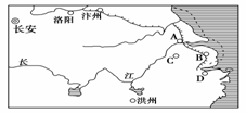 2.下图为隋唐时期局部图。A、B、C、D四城市中,同时以陶瓷和纺织品著称的是 ( )