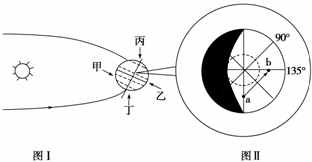 (1)观测者从图Ⅰ中甲、乙、丙、丁四个角度能够观测到图Ⅱ所示昼夜状况的是 ( )