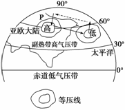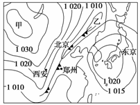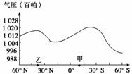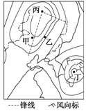 (1)从气压分布状况看,甲处为 ;从气流状况看,乙处为 。图中甲、乙两处最大气压差可能为 百帕(选择填空)。