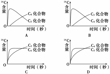 19.在光照下,供给玉米离体叶片少量的14CO2,随着光合作用时间的延续,在光合作用固定CO2形成的C3化合物和C4化合物中,14C含量变化示意图正确的是 ( )