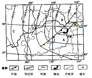 右下图是我国某地区某时近地面天气形势图。据此回答36-37题。