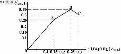 (4)将0.1mol明矾晶体与等物质的量的某无水盐晶体X混合后溶解于水中,所得溶液与上述溶液所含离子种类完全相同。若向该溶液中加入Ba(OH)2溶液,所得沉淀的物质的量与所加入Ba(OH)2的物质的量的关系如图Ⅱ:
