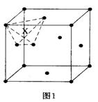 (1) 立方最密堆积的晶胞如图一。请用“X”和“Δ”分别标出其中的正四面体空隙和正八面体空隙的中心位置,计算晶体中球数、四面体空隙数和八面体空隙数之比,并计算此种堆积的空间利用率。