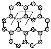 2003年3月日本筑波材料科学国家实验室一个研究小组发现首例带结晶水的晶体在5K下呈现超导性。据报道,该晶体的化学式为 Na0.35CoO2 • 1.3H2O,具有……-CoO2-H2O-Na-H2O-CoO2-H2O-Na-H2O-……层状结构;在以“CoO2”为最简式表示的二维结构中,钴原子和氧原子呈周期性排列,钴原子被4个氧原子包围,Co-O键等长。以 代表氧原子,以 代表钴原子,画出CoO2层的结构,用粗线画出两种二维晶胞。可参考的范例是:石墨的二维晶胞是右图中用粗线围拢的平行四边形。