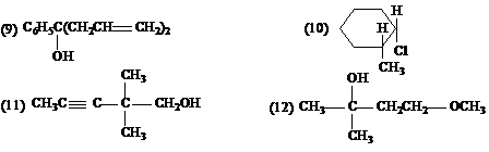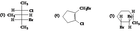 (4) 分子式为C10H14有六个可能的一溴取代物(光照下发生),其中有两个一溴取代物可拆分为一对对映体,该化合物经氧化后生成一个酸性物质C8H6O4;后者只有一种硝化产物C8H5NO6。