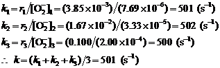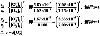 (1) 首先根据题给r和c (O2-)的数据,确定反应级数和速率常数k,由