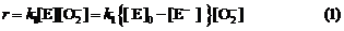 [E] = [E]0 - [E-]在反应过程中是一个常数,故 ,其中k = k1 [E],与实验结果一致。第二个反应在形式上与第一个反应相同,因此若设第二个反应为速控步骤,得到相同结果,{显然,
