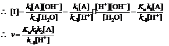 ,令k = Kwk1k2/k-1,则v = k[A][H+]-1,