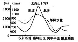 秦岭是我国重要的地理分界线,秦岭主峰太白山海拔3767米,某学校高一年级研究性学习小组的同学从南麓开始攀登山峰,进行生态考察。右图为秦岭地区地形剖面图与年降水量曲线图,据此回答28-30题。