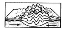 右图为某种类型的板块边界示意图。以下地貌单元中,
