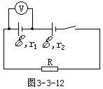 1.如图3-3-12所示,电路中两节电池电动势相同,而内电阻不同,即r1≠r2,为使电压表的示数为零,则电阻器R的阻值应为 [ ]